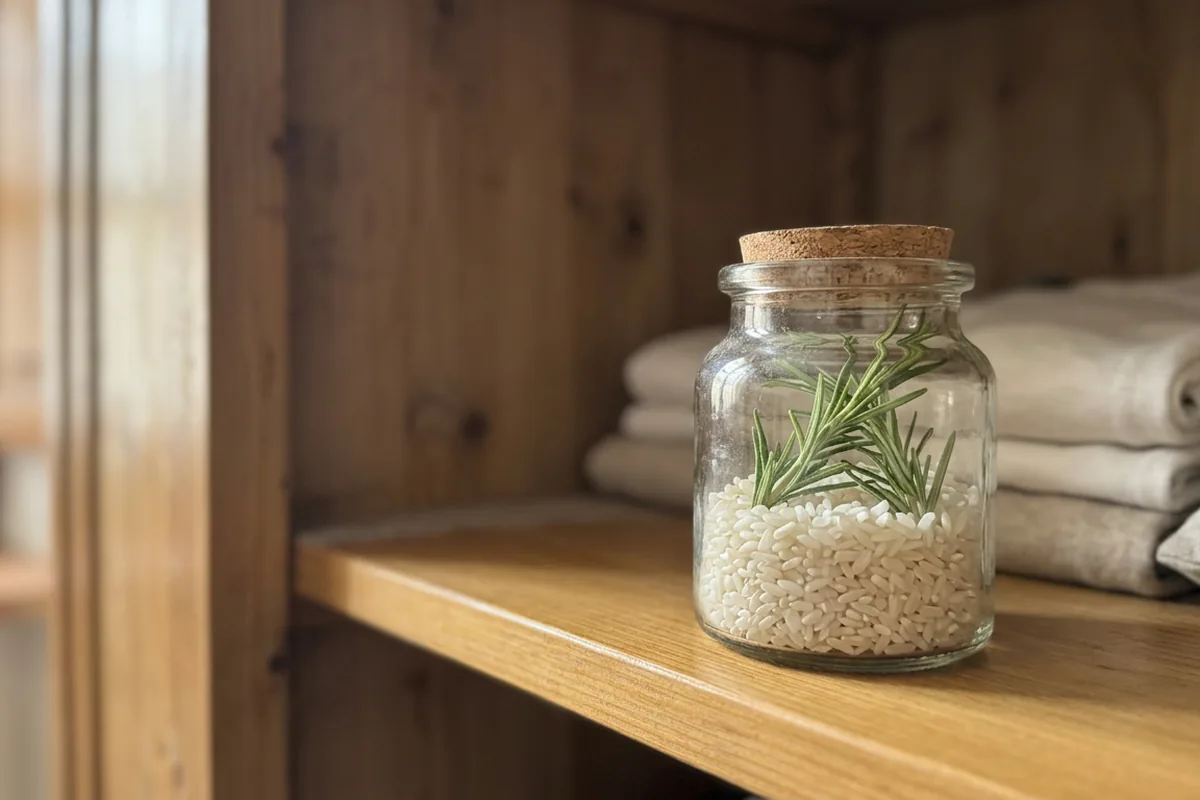 Basta aprire l’armadio per accorgersi se i vestiti respirano o “sanno di chiuso”. Gli odori di umidità si infilano tra maglioni e lenzuola, soprattutto in case poco arieggiate o in zone costiere. Invece di riempire i cassetti di profumatori chimici, puoi usare un trucco semplicissimo: un barattolo con riso e rosmarino che asciuga l’aria e lascia un profumo fresco, naturale e discreto.