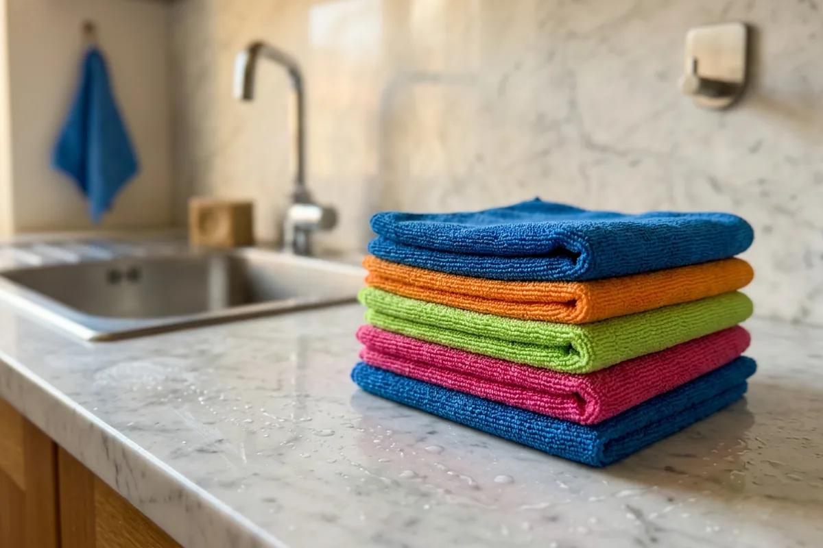 - 3–4 panni riutilizzabili ad asciugatura rapida, meglio se in colori diversi per ogni zona